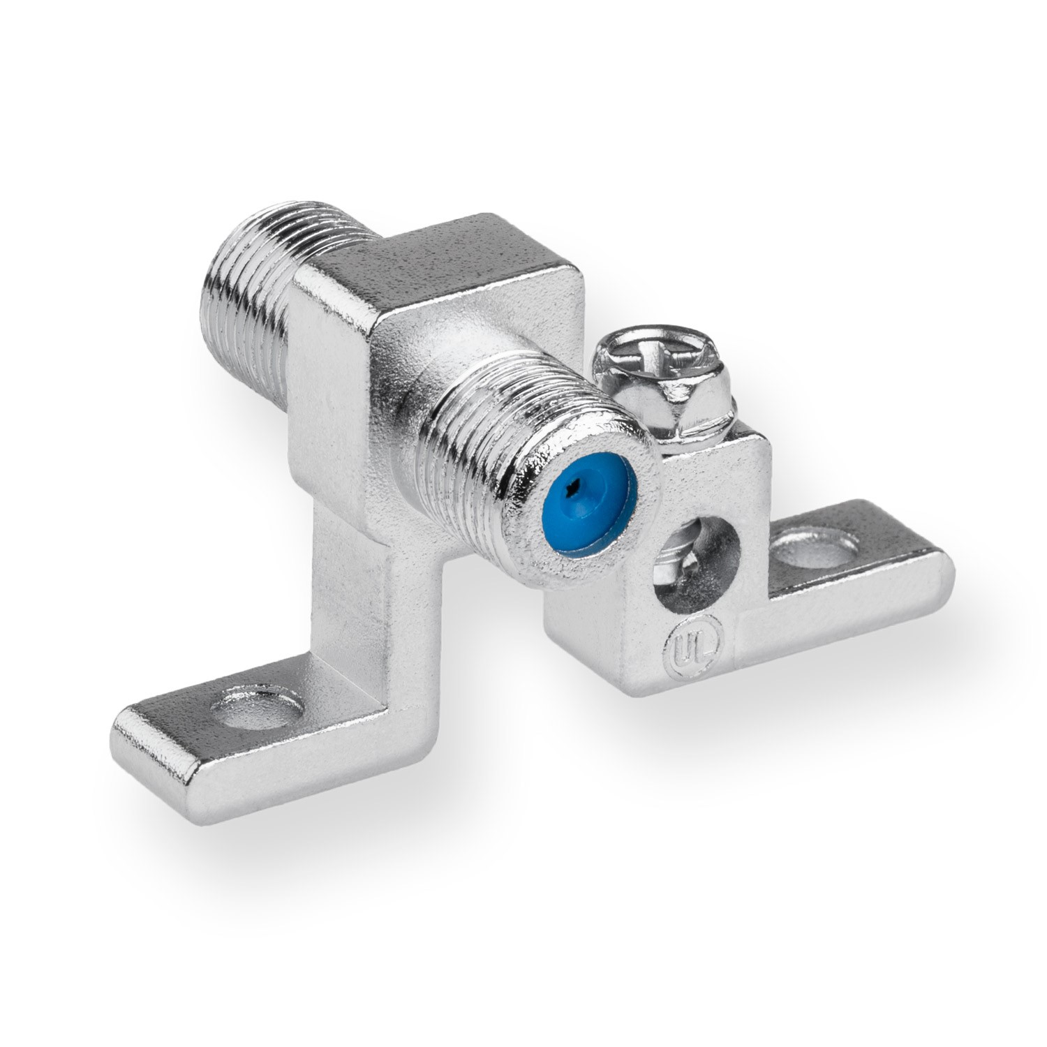 Dieser massive Erdungsblock mit 2 x 1 F-Anschlüssen sorgt für den Potentialausgleich von 1 SAT/Kabel/UKW/DVB-T Leitungen.