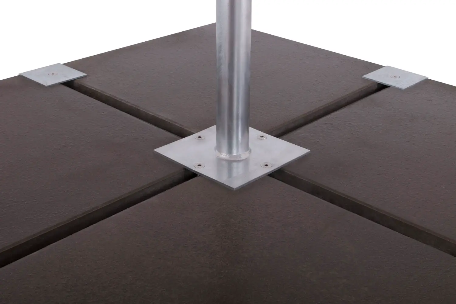 Die Betonplatten werden zusätzlich auf die eingebauten Rechteck-Profile gepresst was noch mehr Stabilität bietet. Auch 8 Platten können (mit optionalem Schraubenset) gestapelt werden.