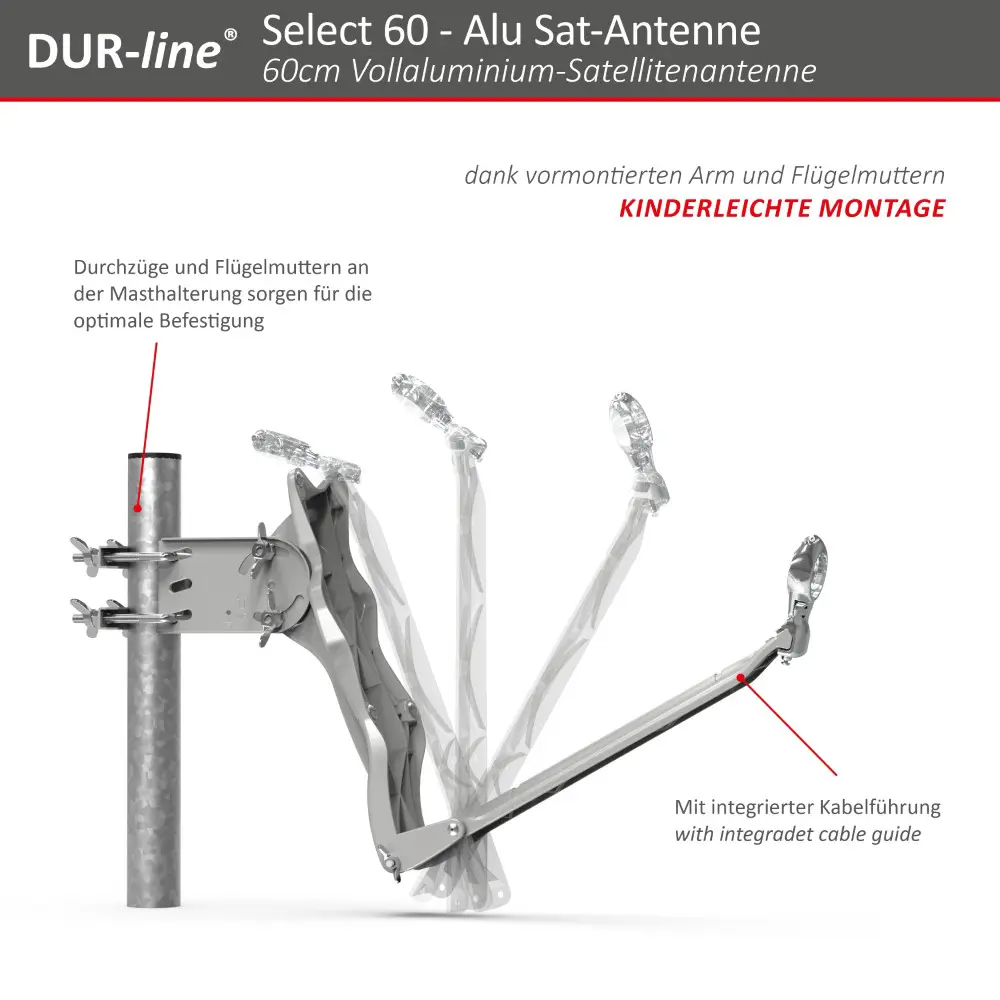 Hier erhalten Sie eine erstklassige Satanlage , bestehend aus der mehrfach ausgezeichneten DUR-line® Select 60/65 Satellitenantenne und einem nagelneuen DUR-line® +Ultra - LNB.