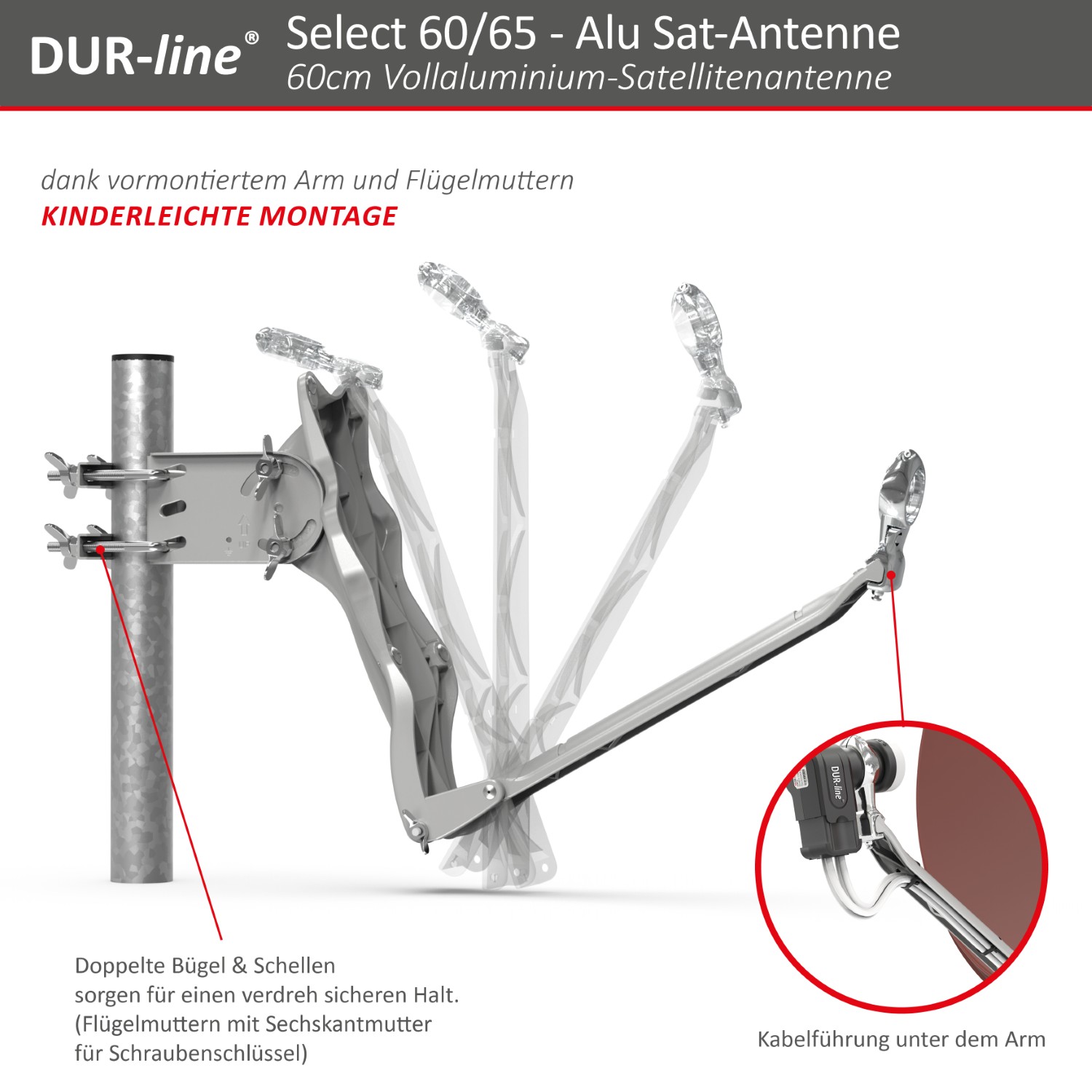 - Hochwertige Marken-Satellitenschüssel von DUR-line – Qualität die jedem Sturm trotzt und dass Jahrzehnte lang!