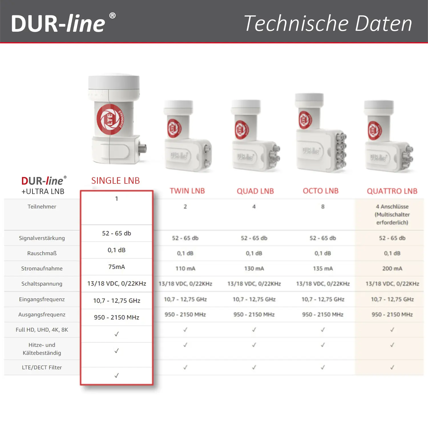 Mit den „+ Ultra" LNBs von DUR-line erwerben Sie erstklassige Qualität und aller neueste Technologie.