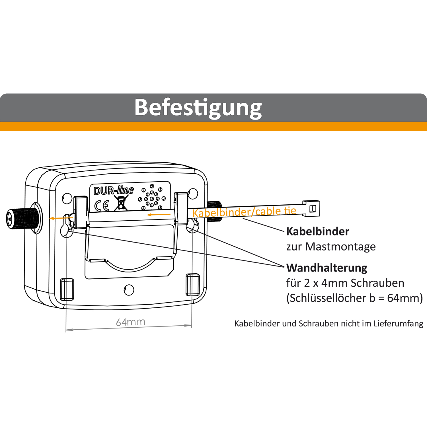 - Batterie nicht erforderlich, Stromversorgung über den Receiver - inkl. F-Kabel und selbstverständlich einer verständlichen Anleitung (Manual in English, French, Spanish for download)