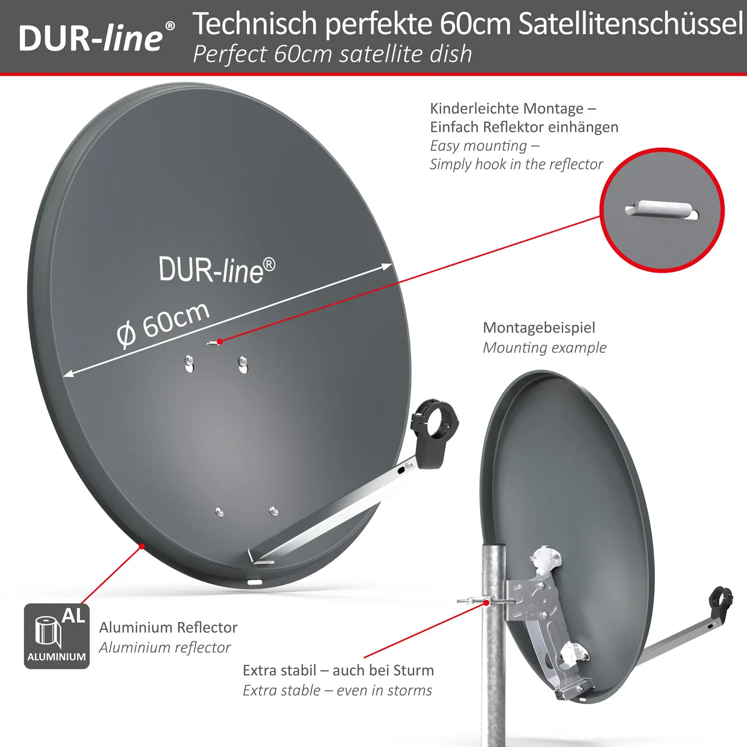DUR-line MDA 60 Anthrazit - Alu Sat-Reflektor