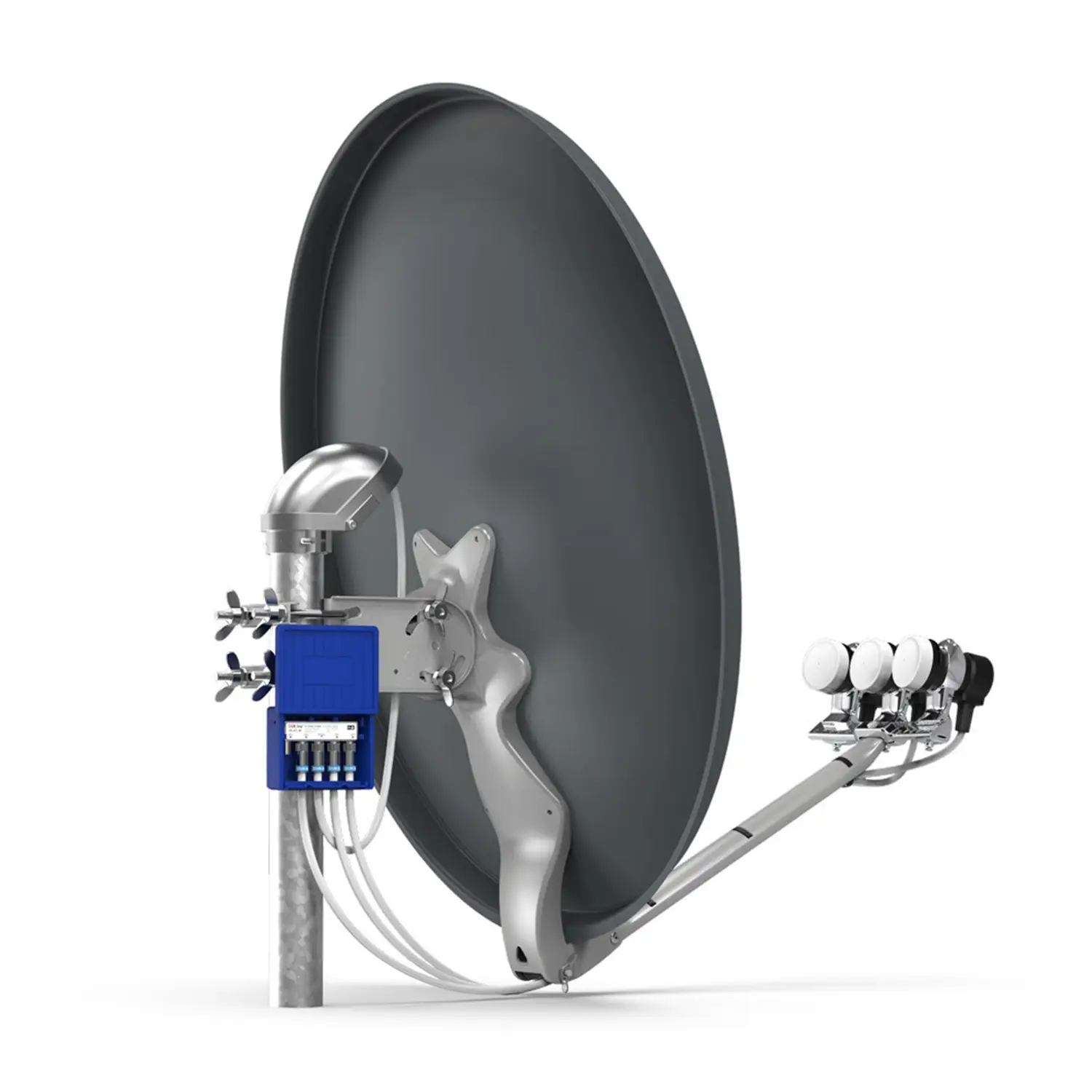 Zum Anschluss für 4 Satelliten (z.B. ASTRA / Hotbird) für 1 Teilnehmer mit Wetterschutz.