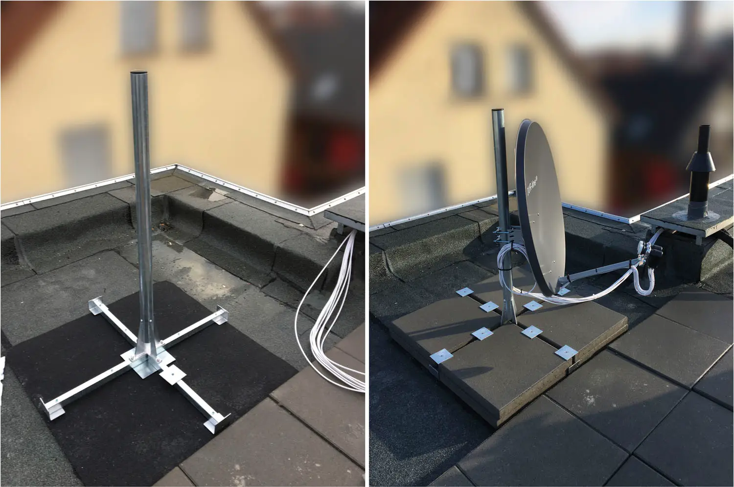- Rohr-Durchmesser 60 mm, Gesamthöhe ca. 120 cm – z.B. für bis zu 120cm Satellitenschüsseln