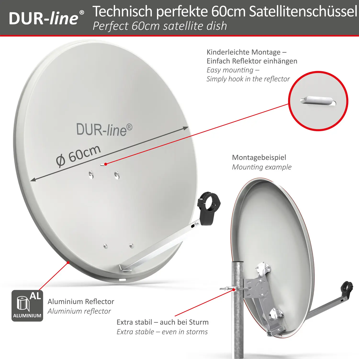 DUR-line MDA 60 Hellgrau - Alu Sat-Reflektor